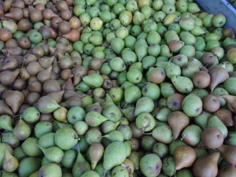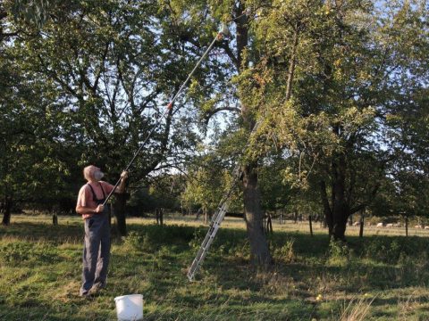 Nachdem im Jahr 2017 viele Obstblüten bei Spätfrösten erfroren sind, ist 2018 ein Superjahr für Äpfel und Birnen. Die Presse meldet, dass die deutschen Obstbaubetriebe ein Plus von 17 % über dem 10-Jahres-Durchschnitt erwarten. Nicht jeder Landwirt hat also in diesem Jahr Verluste eingefahren. Wir haben schon jetzt über 1 t Birnen geerntet und etwa 2,5 t Äpfel. Dabei sind auf unserer über hundert Jahre alten Obstwiese einige Bäume so hoch, dass wir gar nicht überall dran rankommen.