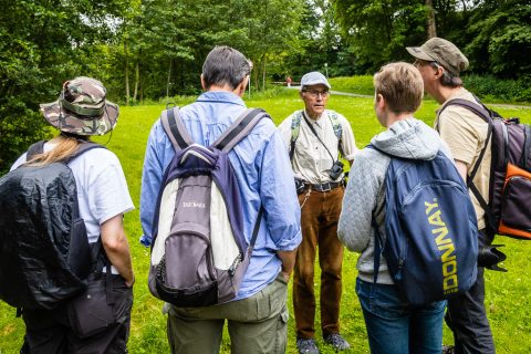 Vom 15. April bis 15. September geht das Rentnerehepaar mindestens 1x / Woche an windstillen, trocknen und möglichst sonnigen Tagen eine festgelegte Strecke im Wohngebiet mit Gärten, sowie Wiesen, Waldrandstreifen und einem Bachlauf im Volkspark ab. Am gestrigen Sonntag (16.06.) nahm Herr Jaedicke eine Gruppe interessierter Naturfreunde mit auf „seine Strecke“ und erläuterte Ziel und Kriterien des Monitoringverfahrens sowie begeisternd Charakteristika und ökologische Besonderheiten der in den verschiedenen Biotopen vorkommenden Schmetterlingsarten.