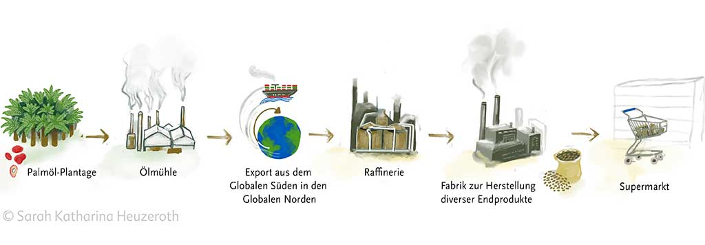 „Für die Palmöl-Produktion nehmen deutsche Unternehmen die Zerstörung tausender Hektar Wald und die Kontaminierung von Gewässern in Kauf. Wertvoller Lebensraum wird zerstört. Und es gibt kein Gesetz, das die Unternehmen daran hindert“, erklärt Gesche Jürgens von Greenpeace, eine der Trägerorganisationen der Initiative Lieferkettengesetz.