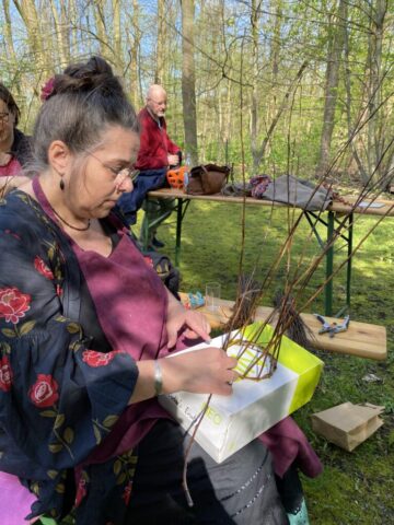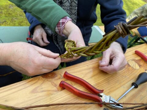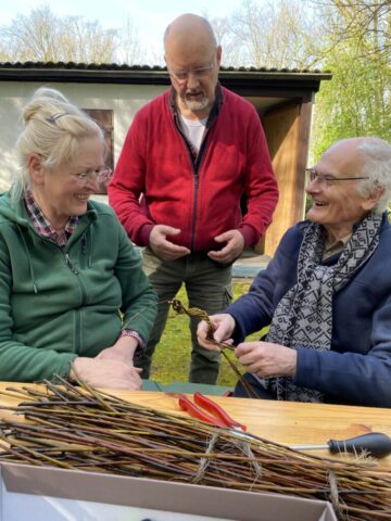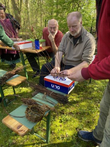 Geduld und kräftiges Zupacken waren gefragt beim zweistündigen Weidenflechtkurs, den der NABU Bochum am 6. April zum ersten Mal anbot.