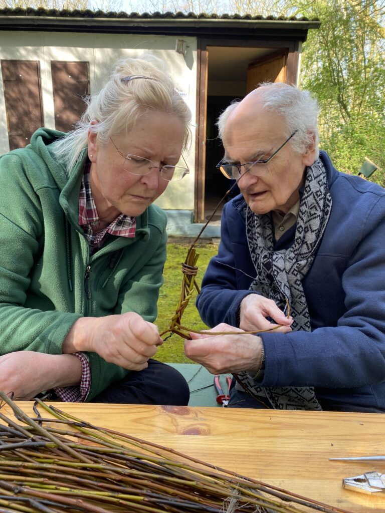 Geduld und kräftiges Zupacken waren gefragt beim zweistündigen Weidenflechtkurs, den der NABU Bochum am 6. April zum ersten Mal anbot.