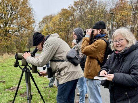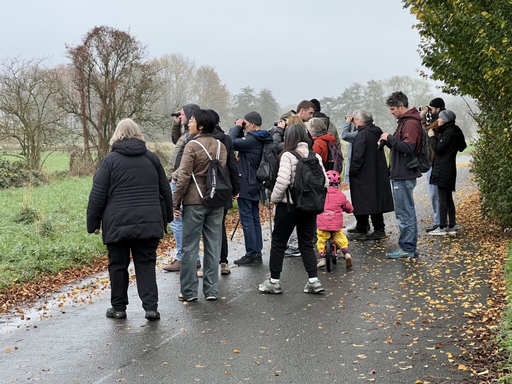 Pünktlich um 09:30 Uhr begrüßten Ulrich Budzuhn und Karin Rodehüser die 17 Teilnehmer*innen zur Veranstaltung und begaben sich zunächst zum Altarm hinter Haus Kemnade. Verschiedene Entenarten (Schnatter-, Löffel-, Stockenten) ließen sich durch das Spektiv auch auf weitere Entfernung gut unterscheiden, zwei Graureiher überflogen die Gruppe und sogar eine Gebirgsstelze ließ sich sehen. Ein in der Nähe ansitzender Eisvogel konnte leider nur durch seinen charakteristischen Pfiff beim Abflug nachgewiesen werden.