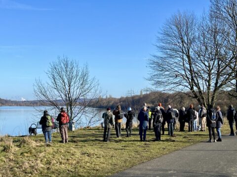 Bei morgendlichen Temperaturen von 4 Grad, wolkenlosem Himmel und Sonnenschein konnten Karin Rodehüser und Ulrich Budszuhn 20 interessierte Vogelfreund*innen begrüßen. Mit Start am Parkplatz Kemnade führte die Route über 2 Stunden zunächst an den Altarm, von dort zum Stauwehr und dann entlang des Südufers bis zur Bude 128.