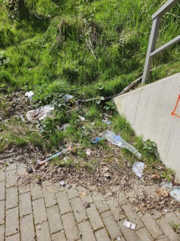 Wie immer wurden sehr viele Flaschen gefunden, welche direkt im nahe gelegenen Glas-Container landeten. Größere Funde wie Säcke mit Kleidung, Stiefel oder Dachpappe mussten zum Abholort getragen werden. Die Menge der Zigarettenreste hielt sich im Vergleich zu den vergangenen Jahren erstaunlicherweise in Grenzen. Vielleicht ein erster Effekt der elektrischen Vapes. Aber auch von diesen wurden 5 Stück gefunden, welche aufgrund ihrer integrierten Batterien niemals in die Umwelt/Natur gelangen dürfen. Sie gehören in den Elektroschrott.