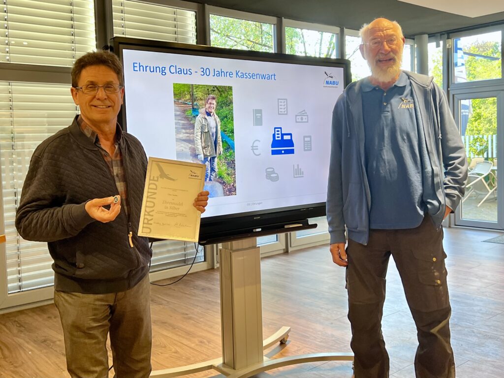 Zudem wurde Claus Sandke für seine 30jährige Tätigkeit als Kassenwart des NABU Bochum mit der Silbernen Ehrennadel und einer Urkunde geehrt.