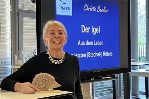 34 Interessierte Naturfreunde folgten dieser Einladung und über eine Stunde den Ausführungen von Christa Becker. Was ist der Igel für uns, wofür steht er? Nach dieser einführenden Fragestellung ging die Referentin ausführlich auf die Anatomie, Lebens-, Fortpflanzungs- und Verhaltensweisen des Europäischen Braunbrustigels ein, um dann auf die zentrale Fragestellung des Vortrags zu kommen: Was sind die Hauptursachen für den drastischen Rückgang der Populationszahlen, wodurch wird der Igel in seinem Bestand zunehmend bedroht? Was können wir dagegen tun?