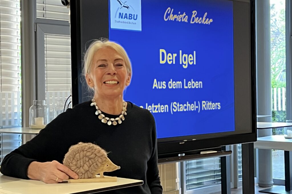 Der europäische Braunbrustigel –  seit der Antike ein beliebtes Motiv in der Kunst, Sympathieträger, Kinderspielzeug, Gegenstand von Märchen sowie vieler Kinder- und Grundschulbücher und -videos, Tier des Jahres 2024 und seit Oktober 2024 von der Weltnaturschutzorganisation (IUCN) als potenziell gefährdet eingestuft. Diese und weitere Aspekte vertiefte NABU-Mitglied Christa Becker in Ihrem Vortrag, der am 14.04.2026 im Multifunktionsraum des Tierparks  Bochum angeboten wurde.